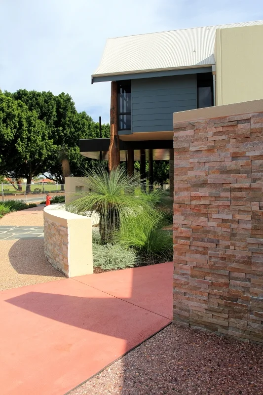 Located across from Lake Monger in the suburb of Wembley, Perth, Western Australia. This building was the final stage of the development for the Telethon Speech and Hearing Centre. The building provides a variety of services which include, a school library, crèche, therapy with specialised audiology booths, administration, training and conference facilities. The internal spaces are modern with free flowing access through the building which is flooded with natural lighting. The landscaping draws upon local indigenous references such as the Wagyl which appears in loose stones. The Wagyl reference relates to the near by swan river and it is believed by the Noongar culture that Lake Monger is where the Wagyl's head penetrated the earth. The landscaping is an important link to the site and is expressed with seasonal and bush tucker plants laid out as a dot painting.