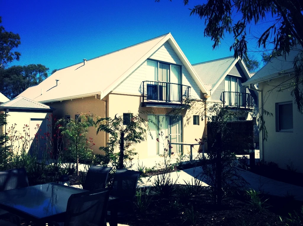 Self contained individually owned holiday accommodation sited on the Geograph bay foreshore. The holiday villas were part of an overall redevelopment of the site. There were a variety of designs connected by meandering paths which are screened with landscaping. A unique feature of this development was working around the existing trees which were preserved.